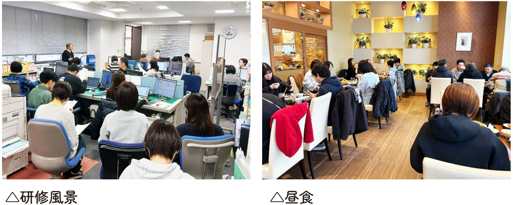 お昼は、毎年恒例のお楽しみ、みんなでランチに行きました。午後にも続く研修に備え、しっかりと腹ごしらえ。和洋中から各々好きなメニューを注文して楽しそうな雰囲気でした。