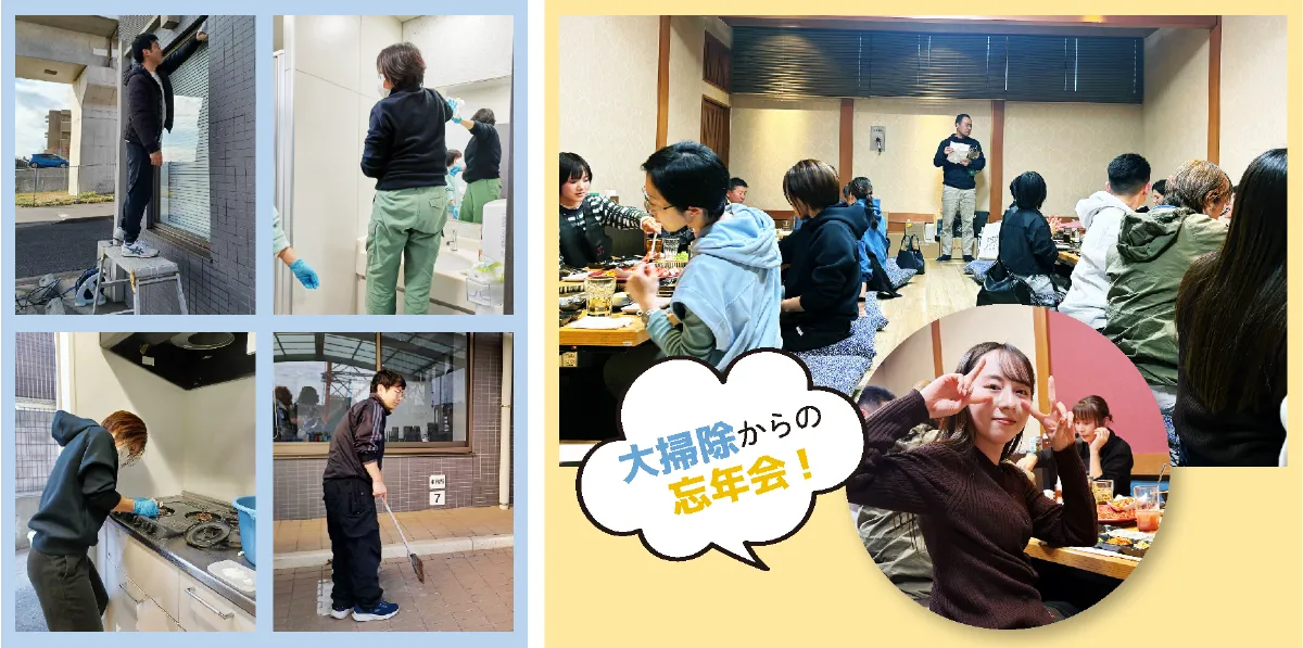 大掃除で動いた後は忘年会でたくさん食べて元気をつけました。